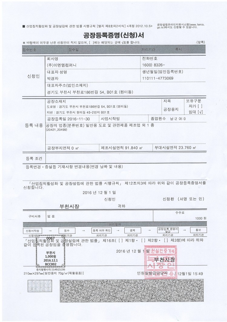 기다리고 기다리던 공장등록을 마무리하였습니다.